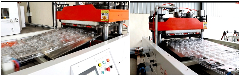 | 6.6kw | 10-22 cycle/min | 800mm | 720mm | 380v | 3T | 4600*1500*1800mm | PVC、APET、PETG、PS、PLA、BOPS |