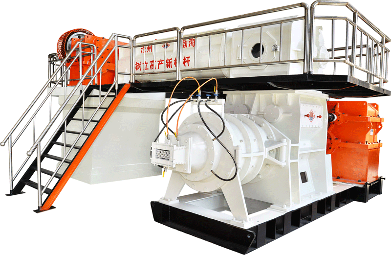 雙級真空擠出機,是我公司吸取國內外先進經驗,設計制造的一種新型制磚設備。主機為全鋼型制造,主要部件采用高耐磨合金鑄造及高頻熱處理技術,具有結構合理、堅固耐用、耗能低、效率高、維修方便等特點,適用于頁巖、煤矸石、粉煤灰,生產空心磚及實心磚的理想設備。