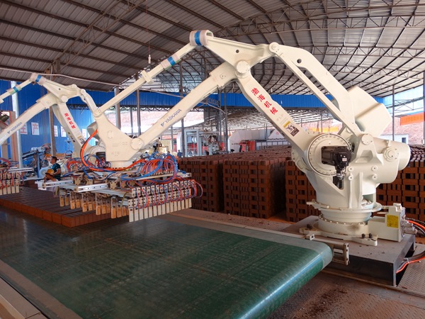工業機器人自動切碼翻系統,可根據不同的碼放形式及磚型靈活設計夾具,該系統基于AC伺服的電氣驅動,工作過程由PLC自動控制。工業機器人自動切碼翻系統打造磚瓦人工智能化生產。是磚機制造商發展的必然趨勢。在新形式下,渤海機械將機器人碼坯集成系統和硬塑擠出成型技術運用于磚瓦行業,實現智能化生產,為您節省大量的人力資源,提高生產產量和經濟效益。